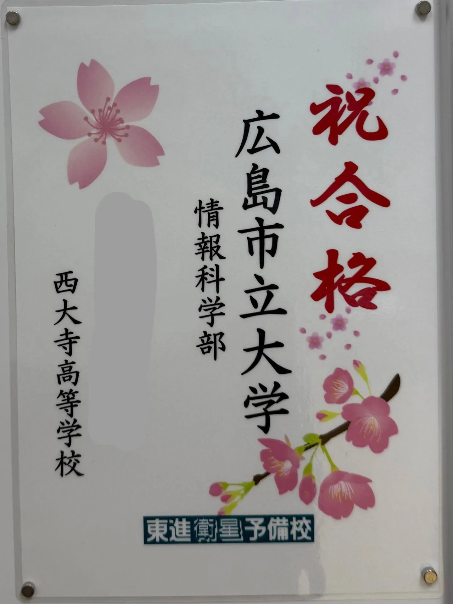 東進衛星予備校東岡山校に通っていたHさんが広島市立大学情報科学部に現役合格しました!㊗️💐✨
